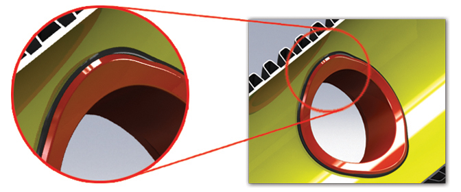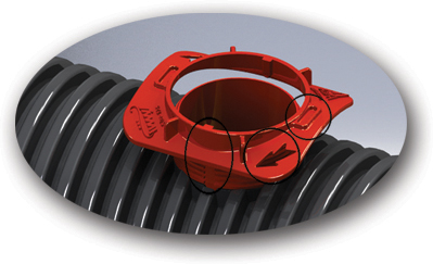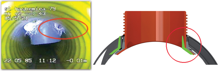 ج) تصميم حواف المطاط المانع للتسرب على شكل حرف R داخل الأنبوب لمنع سقوط الترسبات خلف المطاط المانع للتسرب ومنع شبكة المجاري من الانسداد.